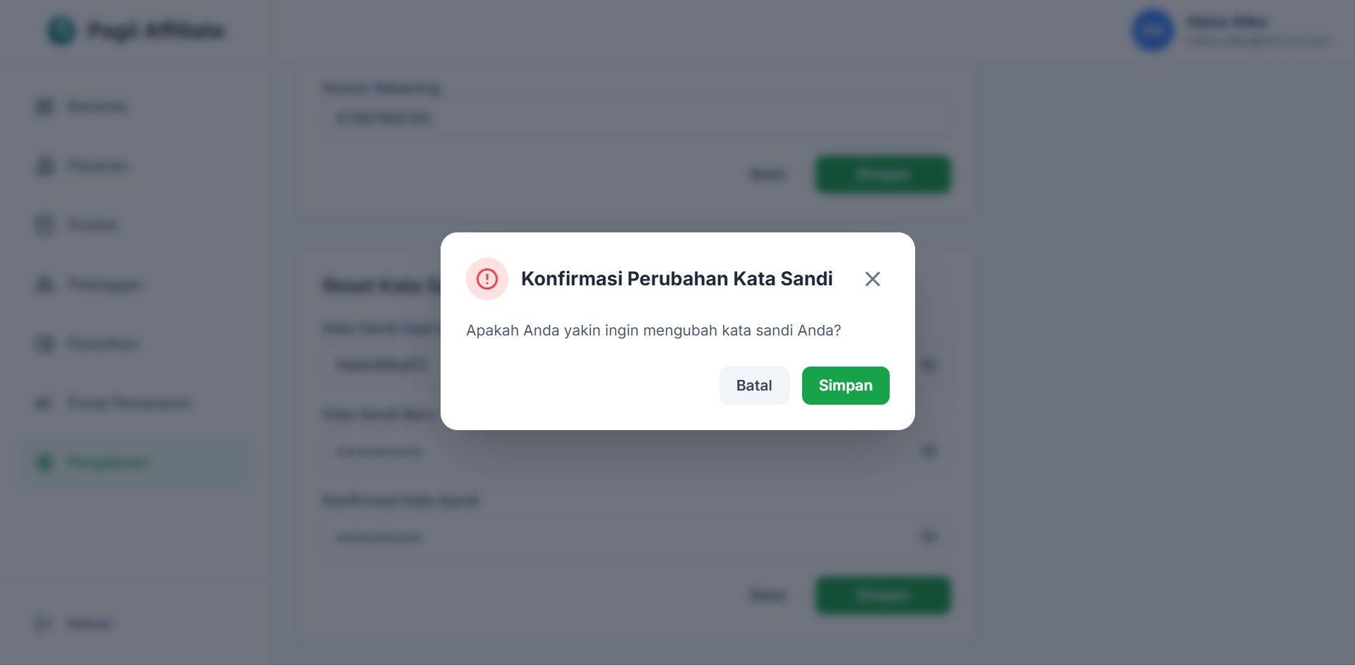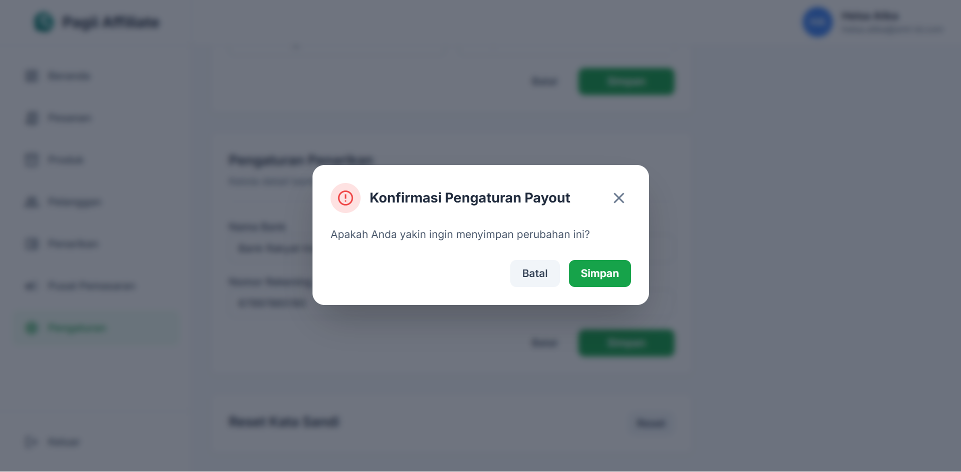 Setelah pembayaran terverifikasi, sistem otomatis mencatat komisi ke dashboard Affiliator.