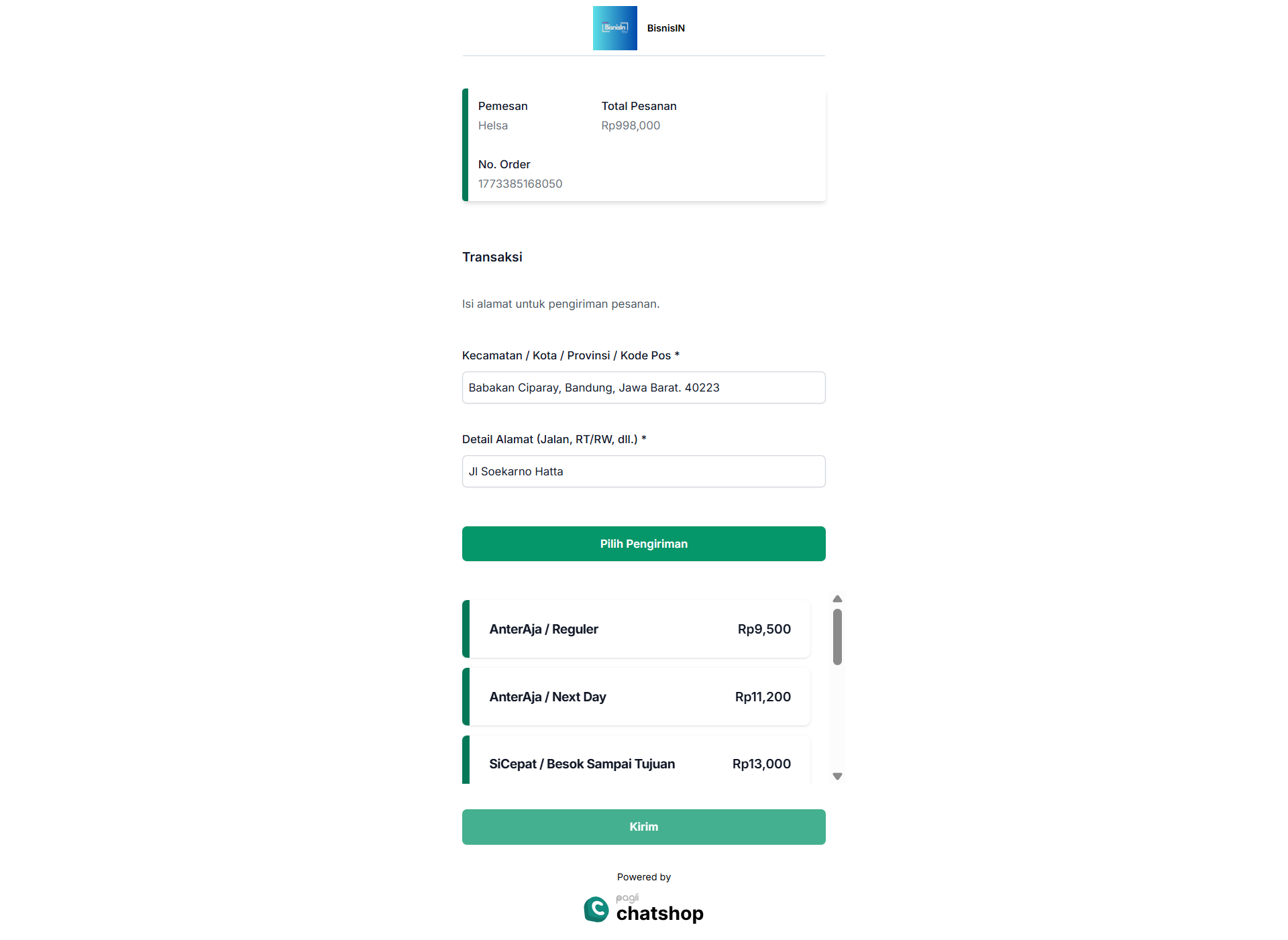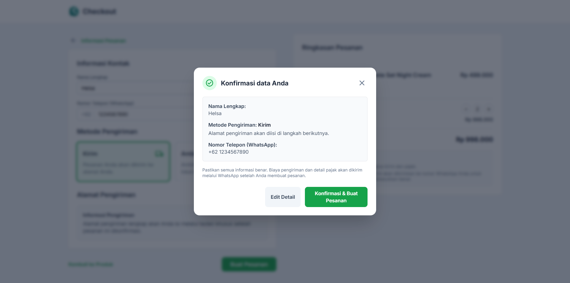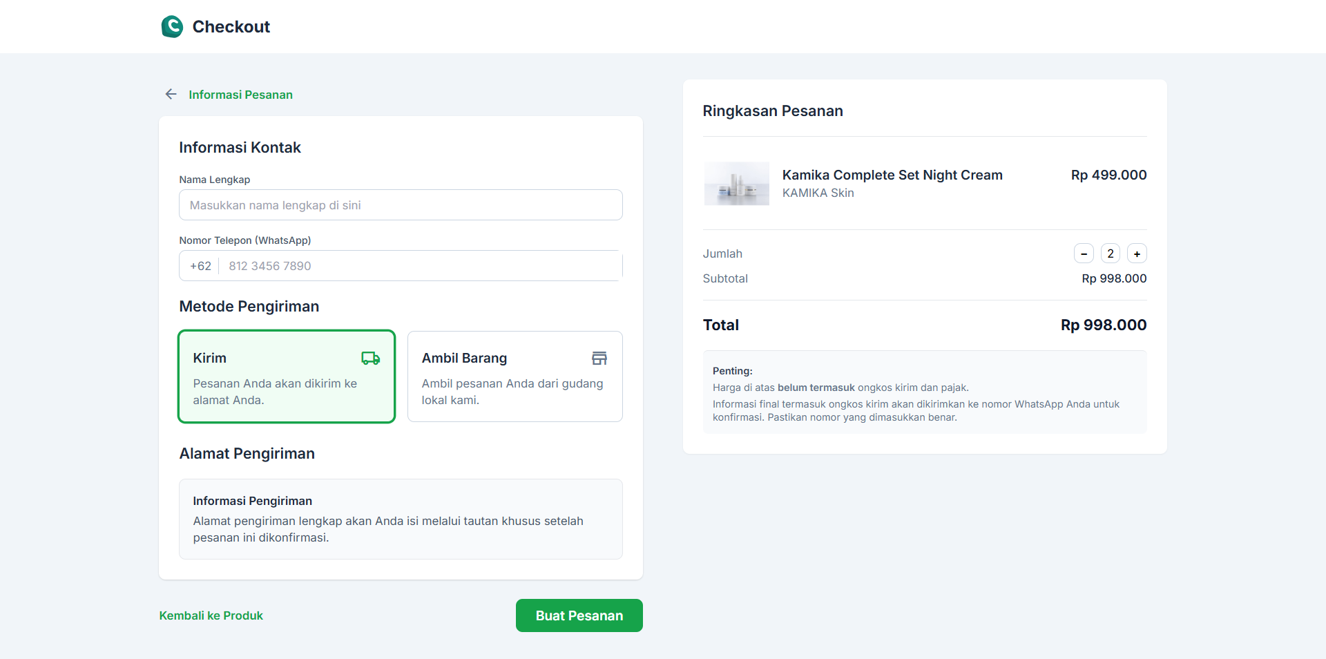 3. Pemesanan: Pelanggan melakukan pemesanan melalui link tersebut.